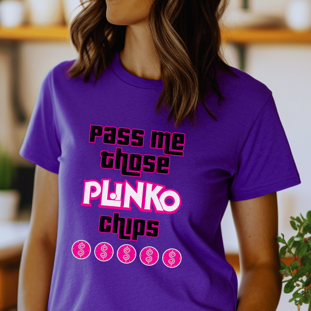 Get ready to win big on The Price is Right with our exclusive Plinko-themed shirt! Designed for true fans of the iconic game show, you’ll be hearing Drew Carey yell “Come On Down,” with this funny pick-me shirt. This tee is perfect for live contestants eager to shout “Pass me those Plinko Chips!” Gear up, wear it proudly, and get ready to drop those chips for a chance to win fabulous prizes!