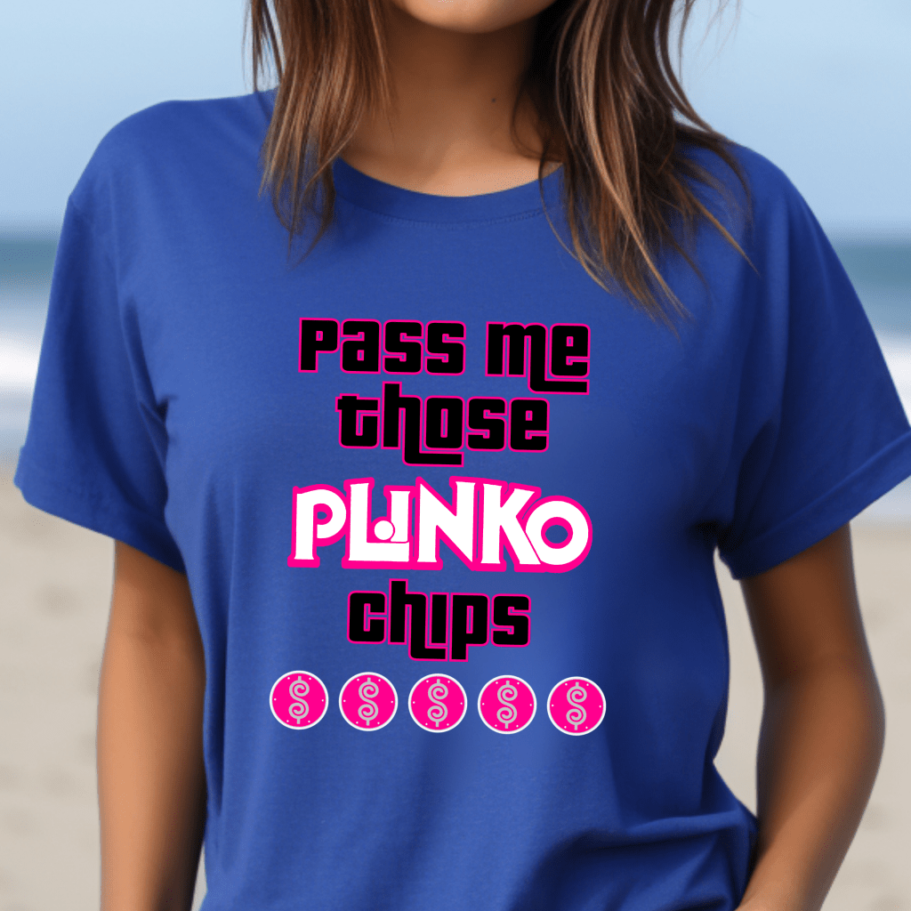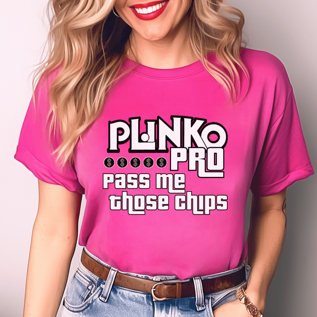 Get ready to stand out in the crowd with this “Plinko Pro. Pass Me Those Chips” Price is Right shirt! Perfect for any Price is Right live contestant, this retro game show shirt is a must-have for fans looking to show off their funny side. Whether you’re eyeing Plinko, the spinner wheel or hoping to hear “Come on down!”, this shirt is your ticket to getting noticed.