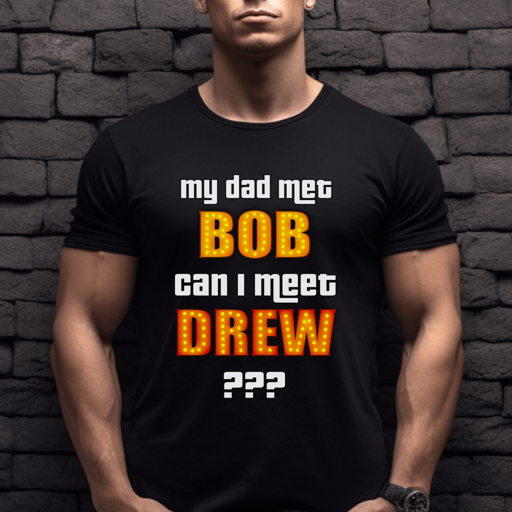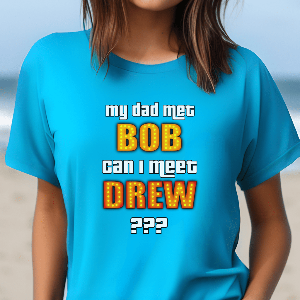 Get ready to steal the spotlight at The Price is Right with our exclusive “My Mom/Dad met Bob, Can I meet Drew?” shirt! Perfect for any aspiring contestant, this retro TV show shirt is a must-have for fans of Bob Barker and Drew Carey alike. Show your enthusiasm and increase your chances of getting picked with our Pick Me Game Show Shirt – Come On Down and be the next Price is Right Live Contestant!