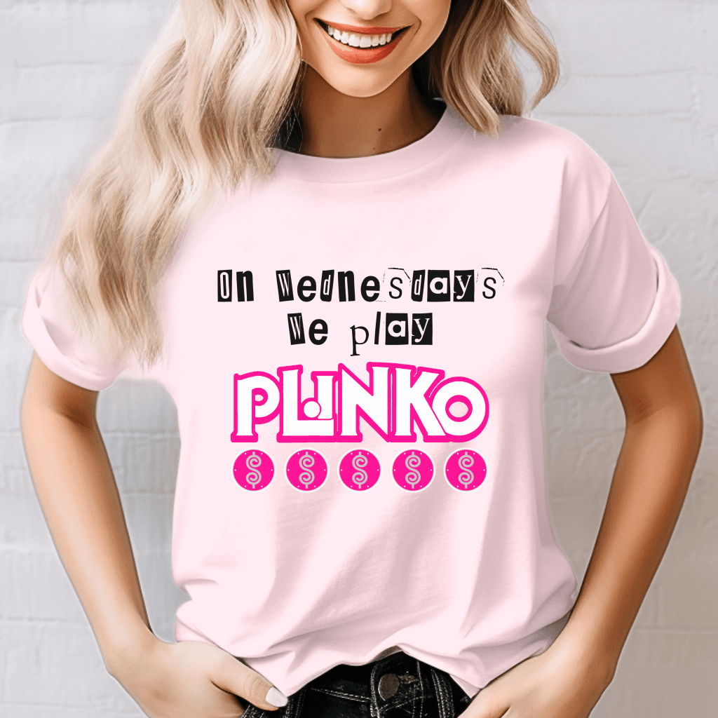Get ready to strut your stuff on The Price is Right stage with our Mean Girls-inspired shirt! Featuring the iconic Burn Book font and a playful twist on the famous line, ‘On Wednesdays We Play Plinko,’ this shirt is a must-have for any Price is Right enthusiast. Channel your inner contestant, make Drew Carey proud, and stand out with this Wednesday Plinko Shirt designed to make you say ‘Pick Me!’