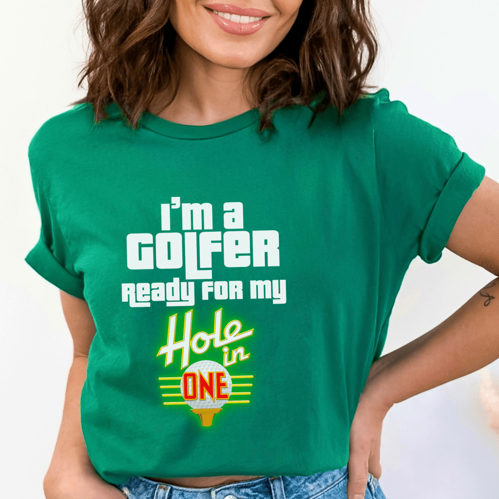 Get ready to stand out to Drew Carey with this Price is Right Shirt for Golf Enthusiasts! Featuring the catchy phrase “I’m a Golfer Ready for my Hole in One,” this Retro Game Show T-Shirt is perfect for live contestants looking to make a statement. Whether you’re hoping to Come On Down, or simply want a fun Pick Me Price is Right Tee, this is the ultimate shirt for your game show experience!