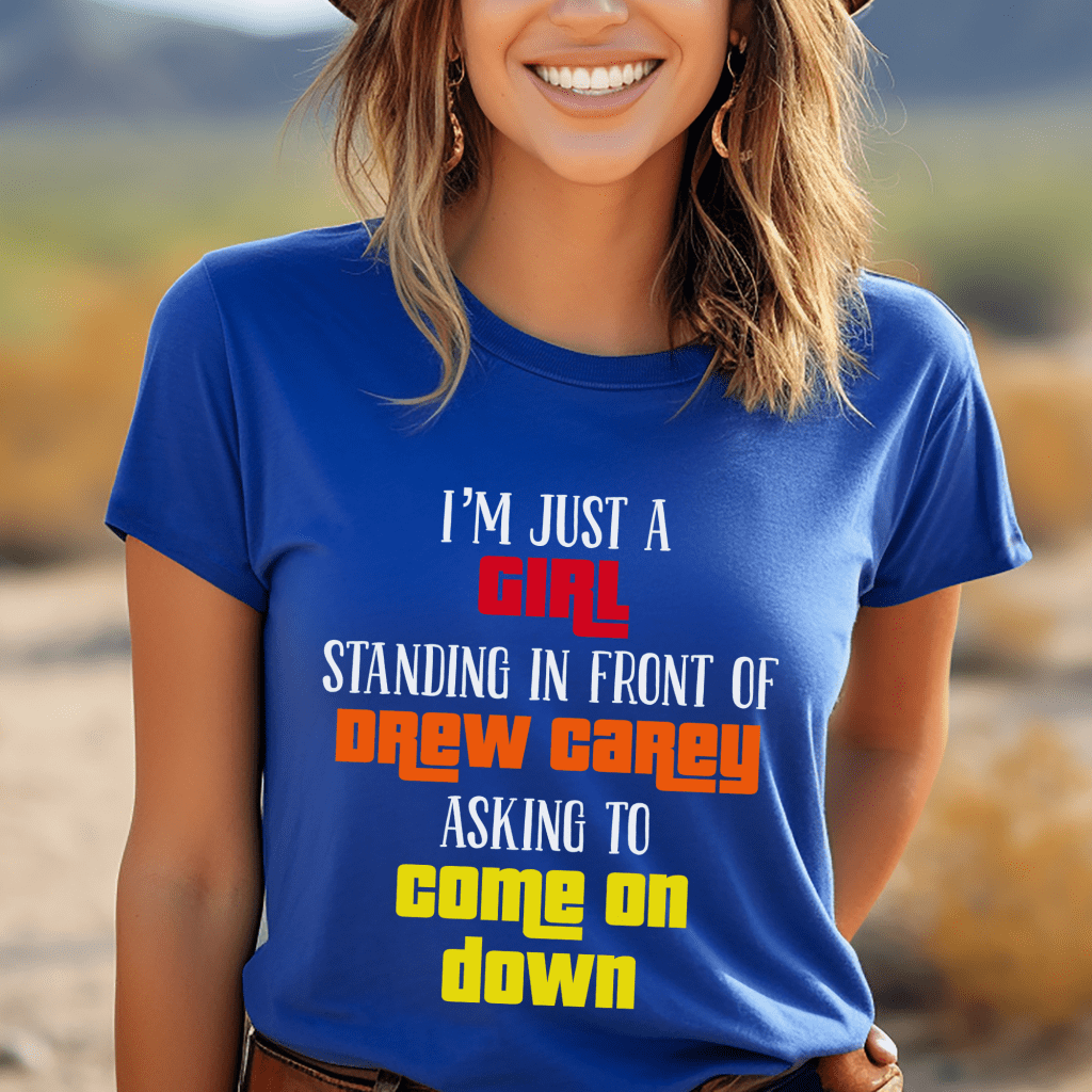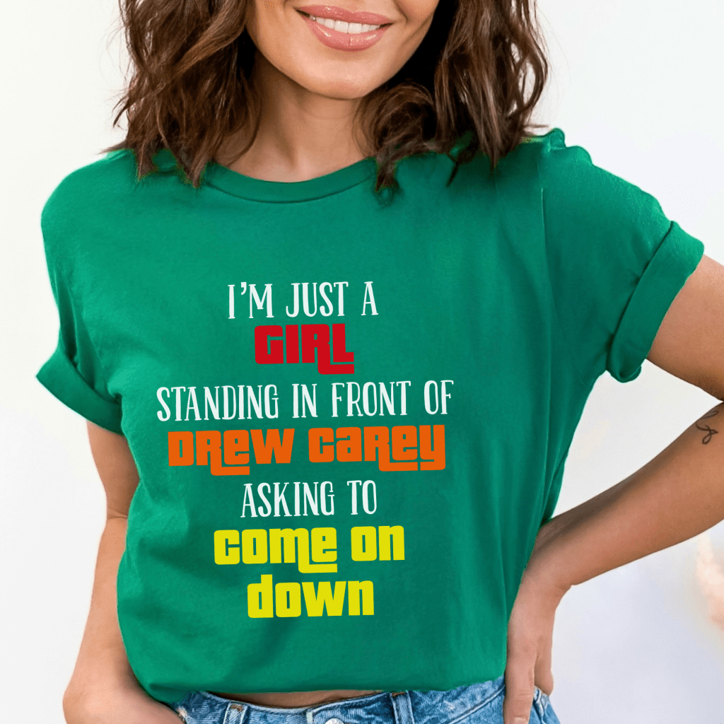 Step into the spotlight with this Price is Right Shirt for Notting Hill Fan, featuring the cheeky phrase: “Just a Girl Standing in front of Drew Carey Asking to Come on Down.” Perfect for fans of the classic movie and the iconic retro game show, this playful tee is a must-have for aspiring Price is Right Live contestants ready to nail their favorite pricing game. Stand out in the crowd and show Drew Carey you’re ready to shout, “Pick me!”