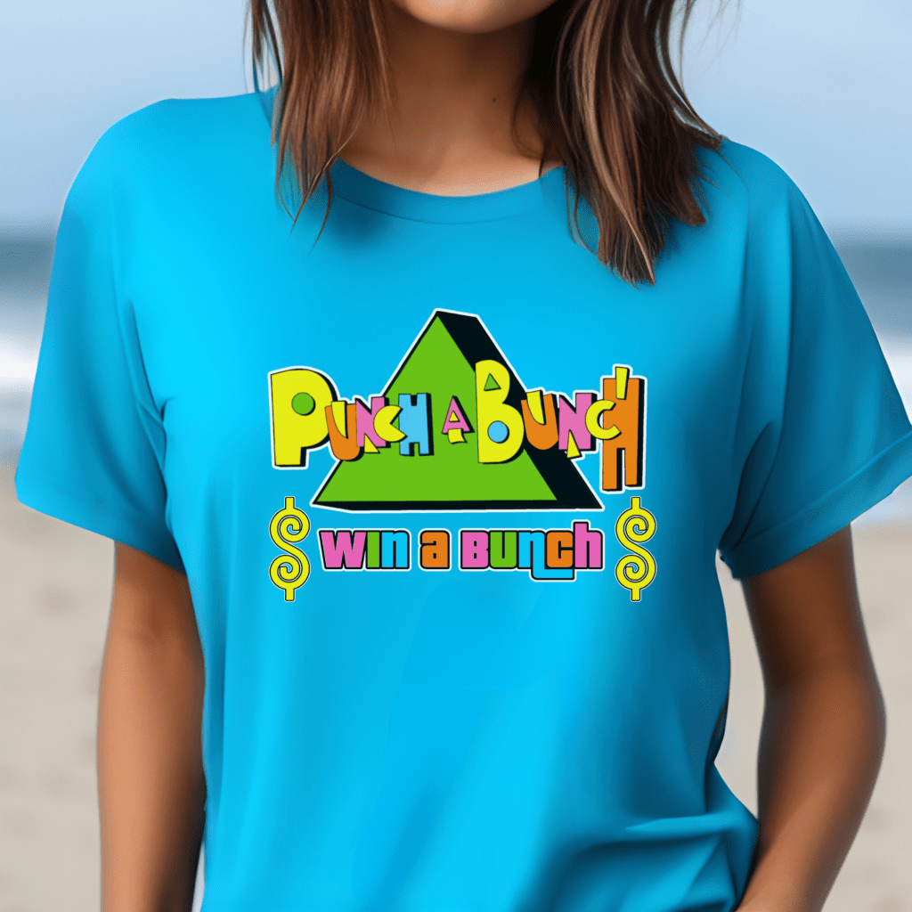 Get ready to steal the show with this hilarious “Punch a Bunch Win a Bunch” Price is Right shirt! Perfect for retro TV game show enthusiasts and Price is Right live contestants, it’s bound to get you noticed. Say “Pick Me” with confidence and channel your inner contestant with this funny Drew Carey-approved tee.