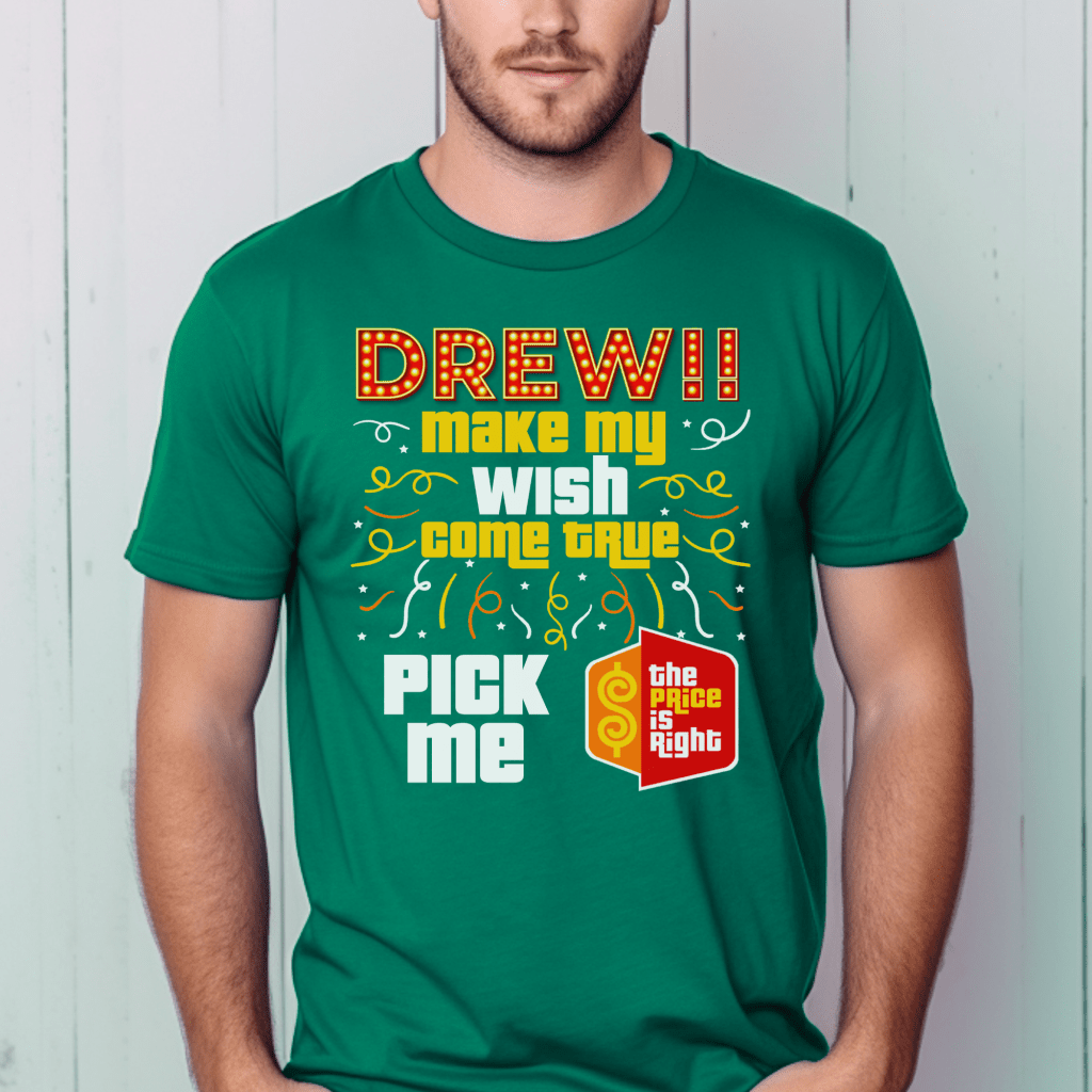 Get ready to “Come On Down” with this hilarious “Price is Right Shirt Funny” design that’s perfect for the show! Featuring the playful phrase “Drew, Make My Wish Come True. Pick Me”, this retro game show shirt is ideal for any Price is Right Live Contestant or fan of Drew Carey. It’s the ultimate party shirt to stand out and show your game show spirit!