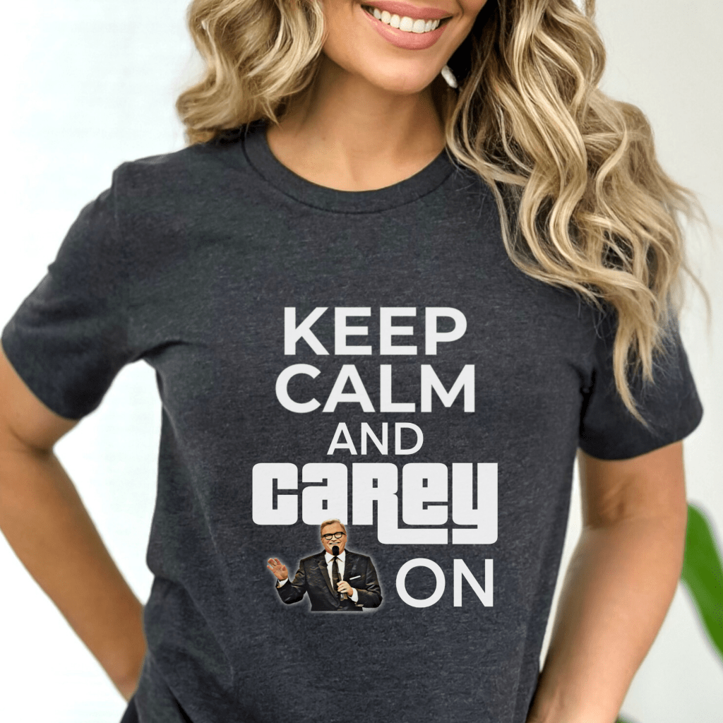 Get ready to “Come On Down” in style with this Price is Right Shirt Funny design! Featuring the witty phrase “Keep Calm and Carey On,” this Pick Me Game Show Shirt is perfect for Price is Right Live Contestants and fans of Drew Carey. Whether you’re spinning the Prize Wheel or cheering from the audience, this Keep Calm Shirt is your ticket to game show glory!