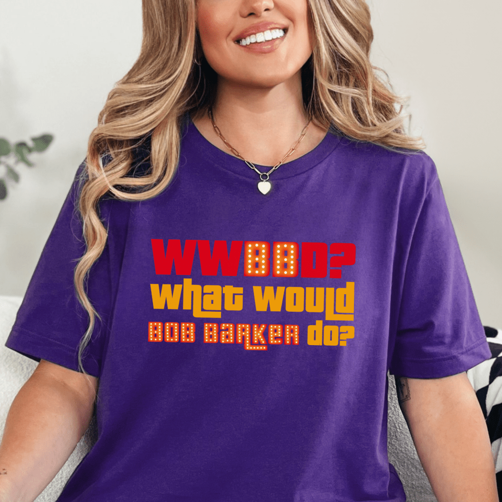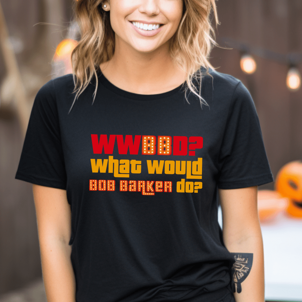 Get ready to “Come on Down” with this hilarious Price is Right Shirt! Featuring the phrase “WWBBD? What Would Bob Barker Do?”, this retro game show shirt is perfect for any Price is Right Live Contestant. Show off your love for the spinner wheel and make sure everyone knows you’re ready to be picked with this funny, must-have shirt!