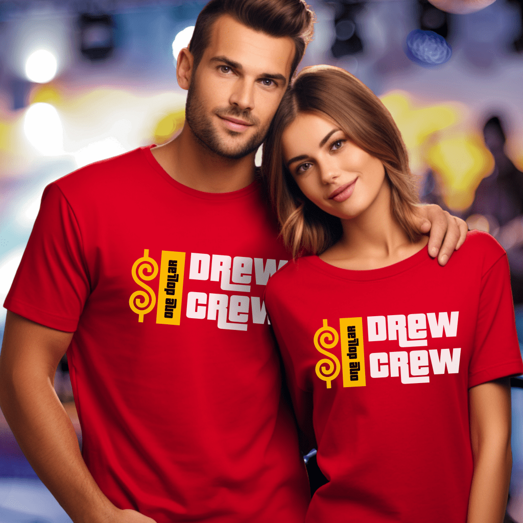 Get ready to stand out at The Price is Right with our exclusive “$1 Drew Crew” shirt, perfect for cheering on as you shout “$1, Drew!” from Contestants Row. This retro TV show shirt is a must-have for any Price is Right Live contestant and paying homage to host Drew Carey. Elevate your Pick Me game show shirt collection with this unique and fun addition!