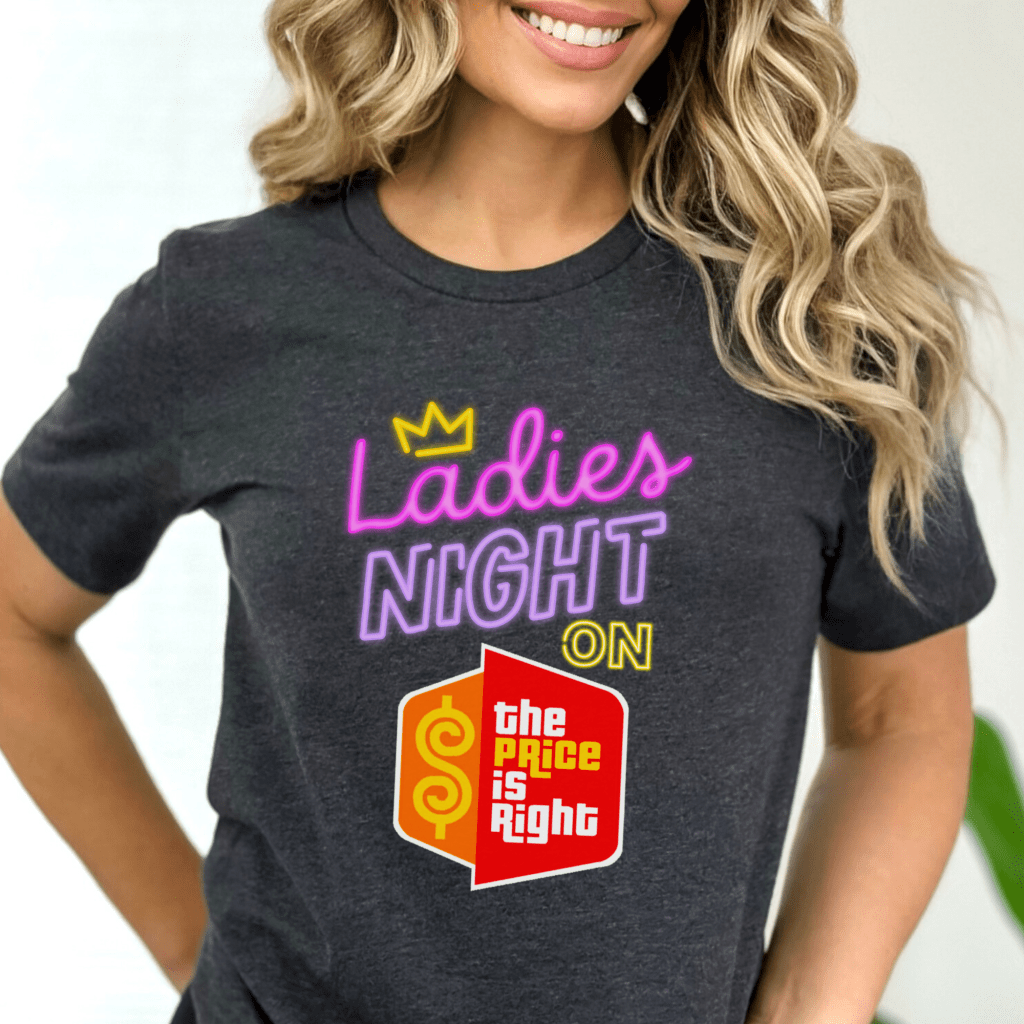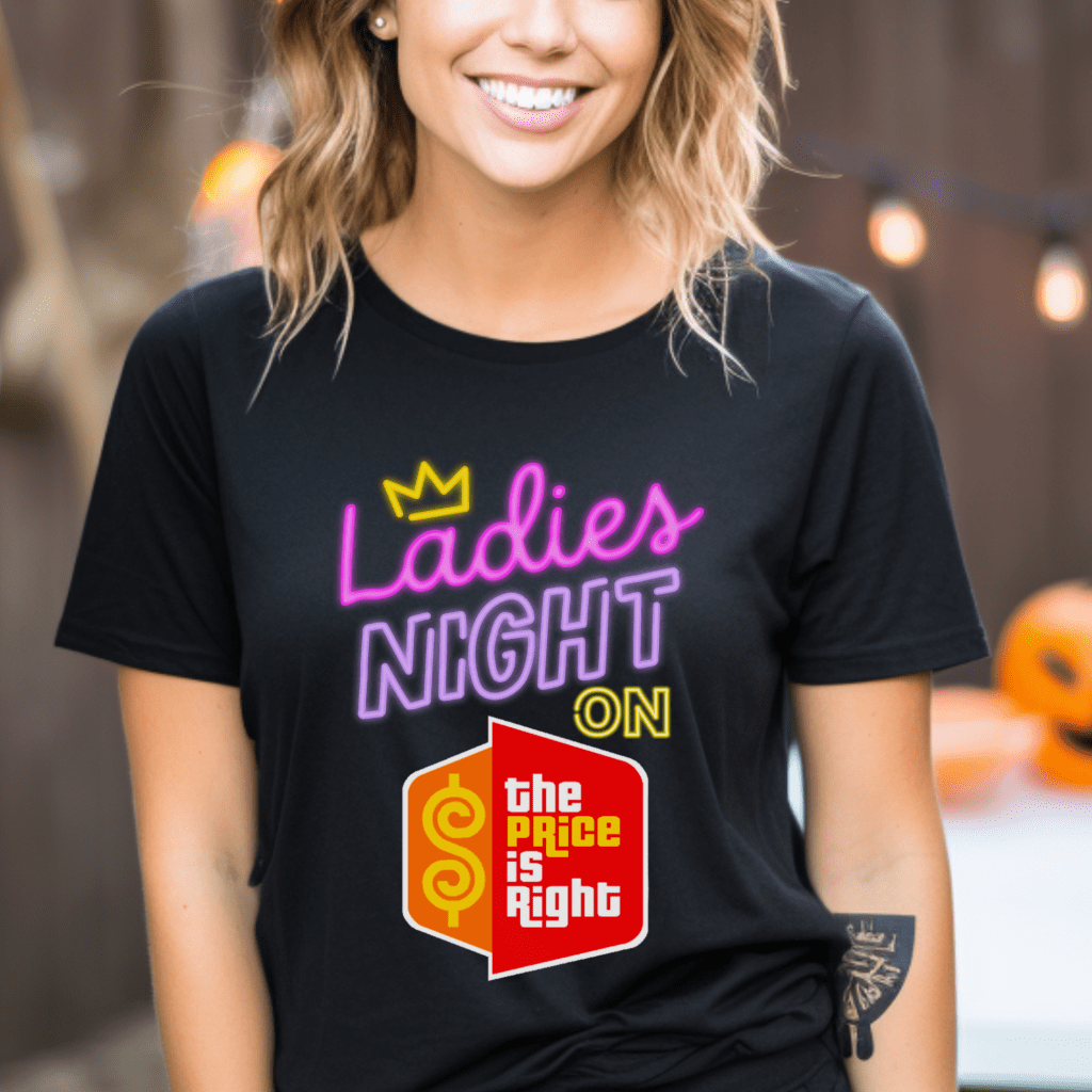 Get ready to “Come On Down” in style with this Price is Right Shirt for Ladies Night Group – the perfect outfit for a fun night at the show! Featuring a bold retro design, this tee is great for Price is Right Live Contestant hopefuls looking to catch Drew Carey’s eye and spin the Prize Wheel. Whether you’re part of a group or flying solo, this Pick Me Retro Game Show shirt will have you standing out in the crowd!