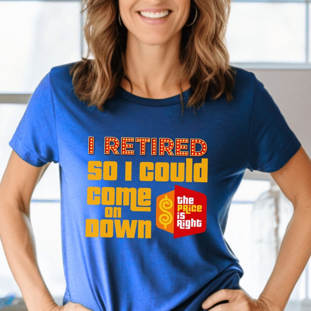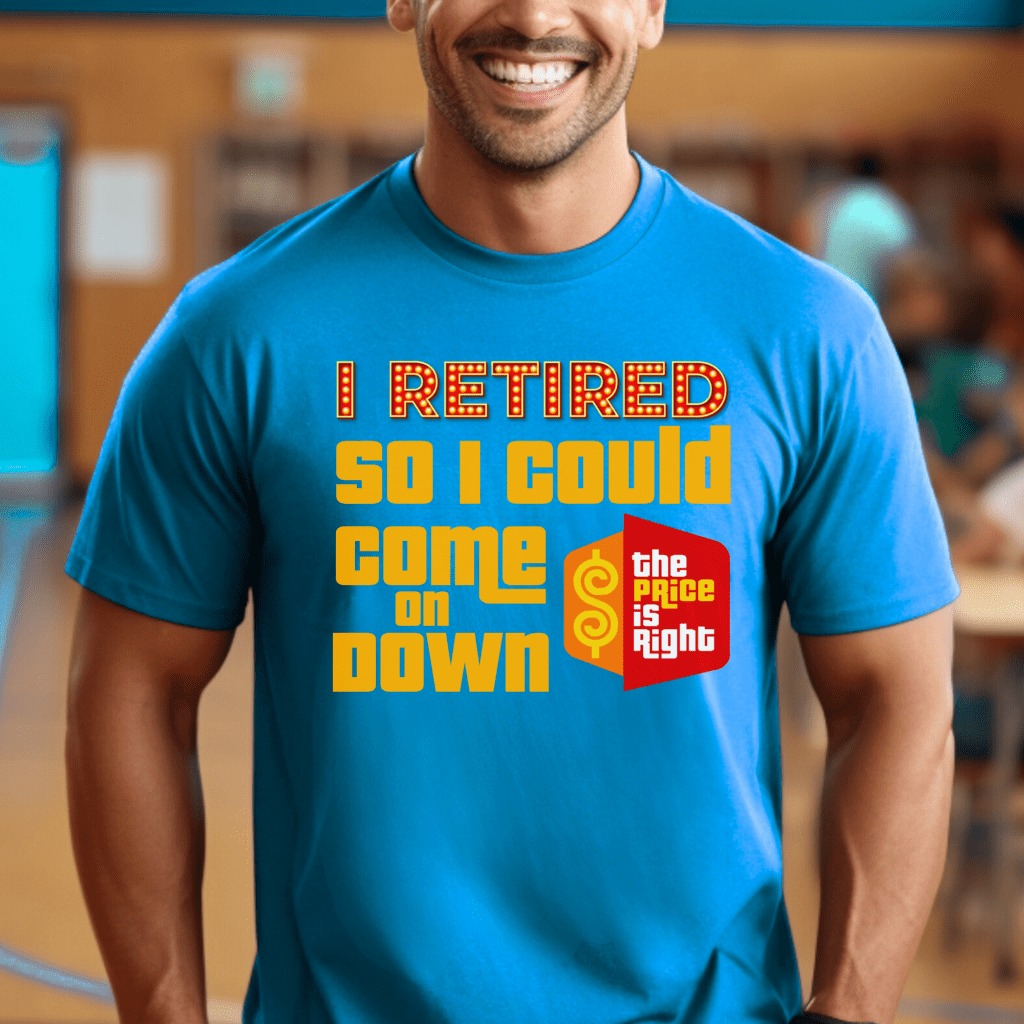 Get ready for your moment in the spotlight with this “I Retired so I Could Come On Down” Price is Right Shirt! Perfect for any retiree attending the show, this Pick Me Game Show Shirt is a must-have for fans of Drew Carey and aspiring Price is Right Live Contestants. Makes a fun and unique retirement gift for game show enthusiasts!