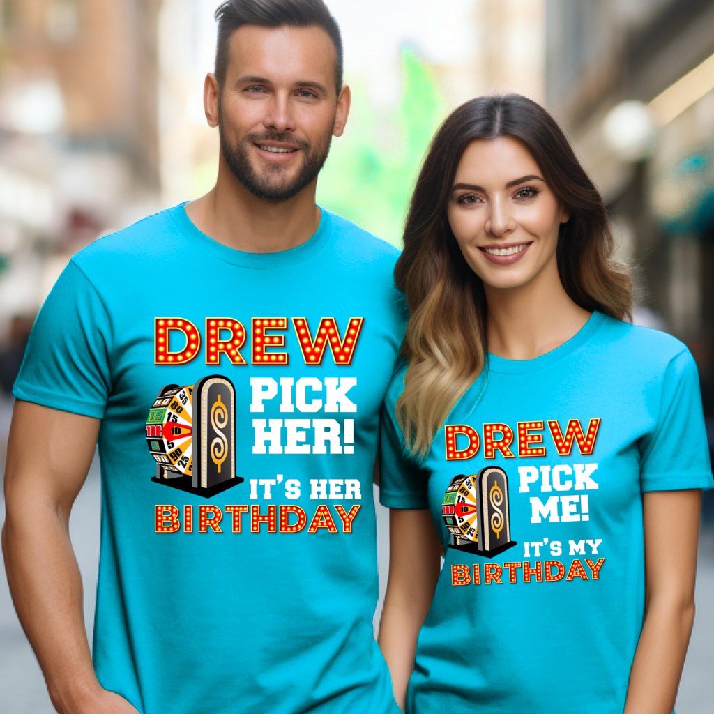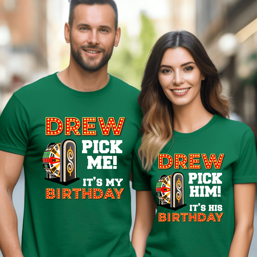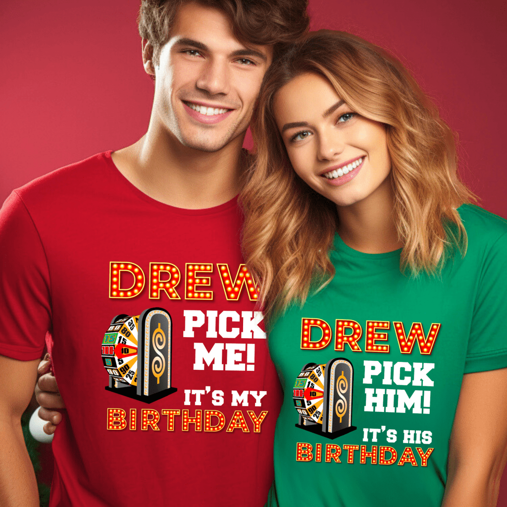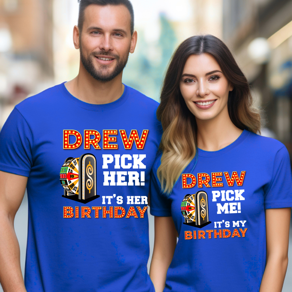 Make your special day unforgettable with our Price is Right Shirt for Birthday! This “Drew, Pick (Him/Her/Me). It’s (His/Her/My) Birthday” shirt is the ultimate Pick Me Game Show Shirt, perfect for standing out as a Price is Right Live Contestant. Hear “Come On Down” and catch Drew Carey’s attention as you celebrate your milestone birthday in style!