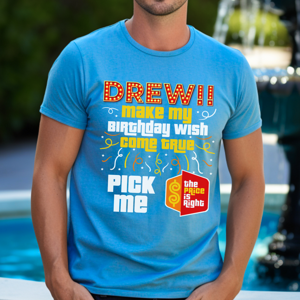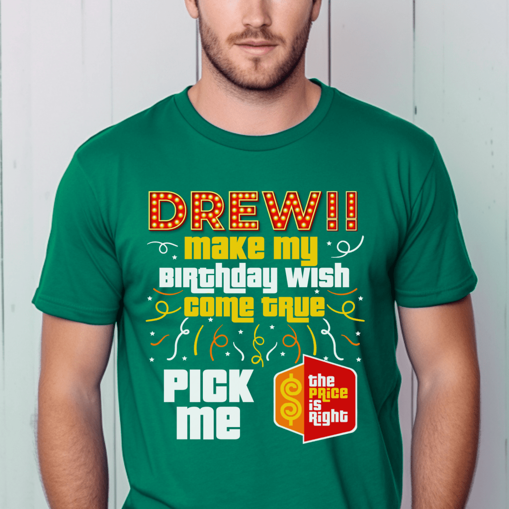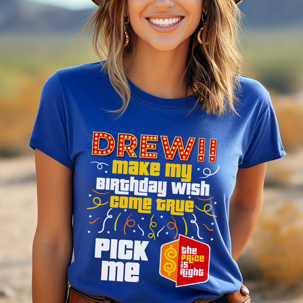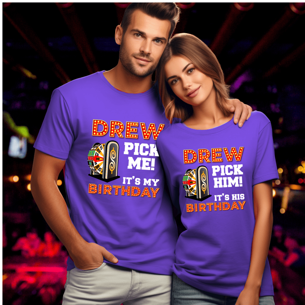 Make your special day unforgettable with our Price is Right Shirt for Birthday! This “Drew, Pick (Him/Her/Me). It’s (His/Her/My) Birthday” shirt is the ultimate Pick Me Game Show Shirt, perfect for standing out as a Price is Right Live Contestant. Hear “Come On Down” and catch Drew Carey’s attention as you celebrate your milestone birthday in style!