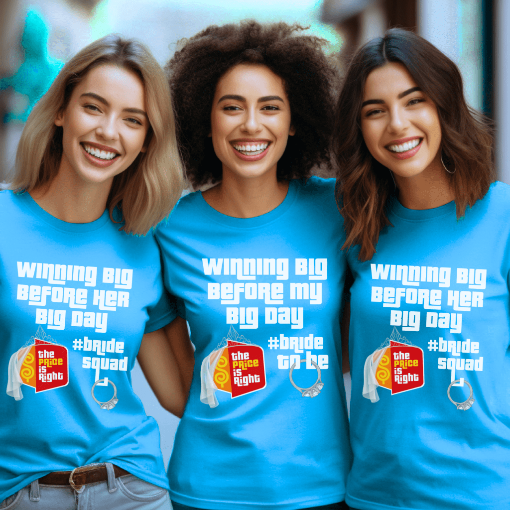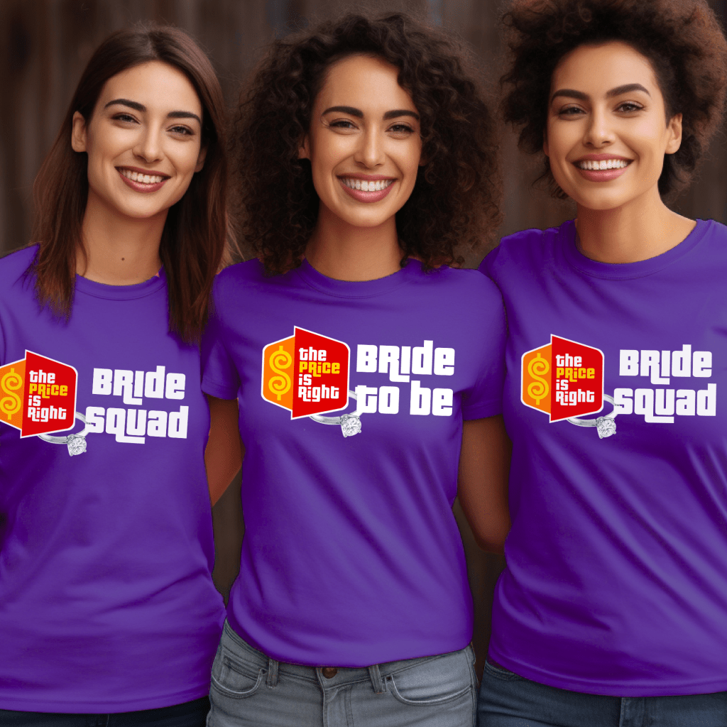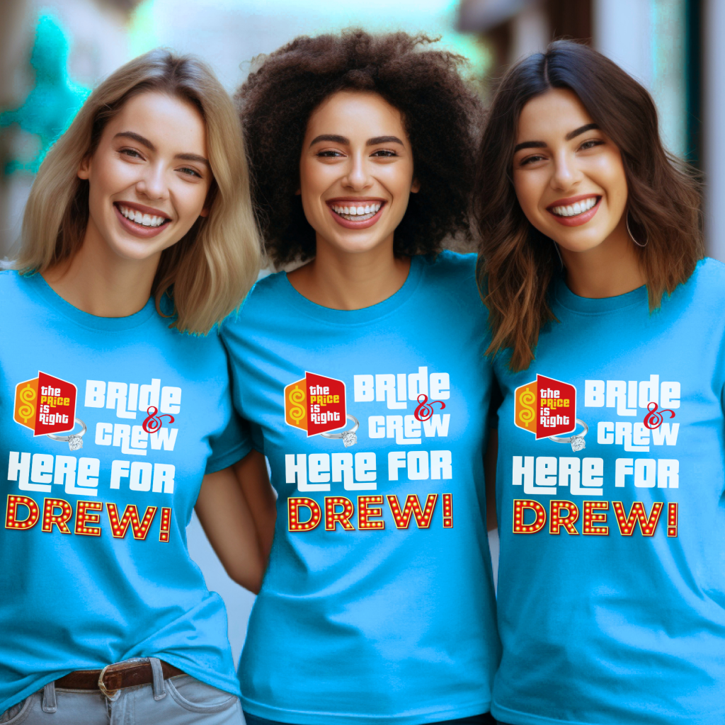 Get ready to “Come on Down” in style with this Price is Right Group Shirt for Bachelorette Party fun! Perfect for the Bride to Be and her Bride Squad, these matching shirts make your whole Bridal Party stand out on the big day. Whether you’re hoping to spin the Prize Wheel or get noticed as the ultimate Pick Me Shirt, this is the perfect way to celebrate your trip to the show!