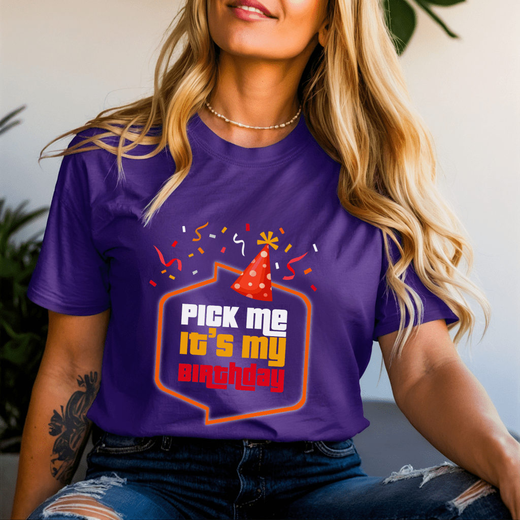 Celebrate your special day in style with this Price is Right Shirt for Birthday fans! Featuring the bold “Pick Me. It’s My Birthday” design, this Pick Me Game Show Shirt is perfect for Come On Down moments on the show or at Price is Right Live Contestant events. Whether you’re honoring a milestone birthday or just love Drew Carey, this fun shirt makes a memorable statement!