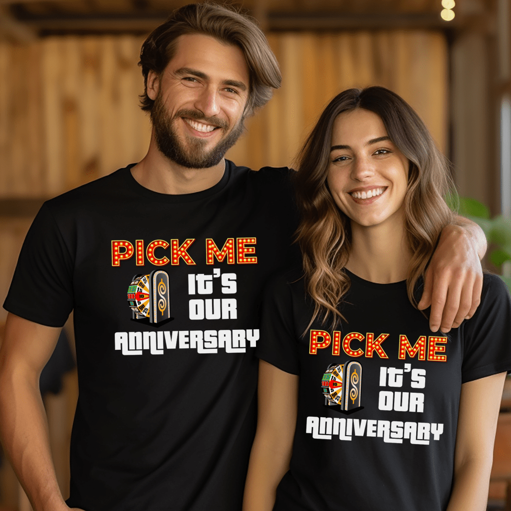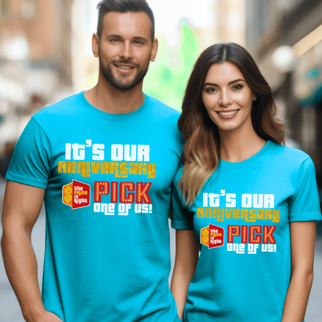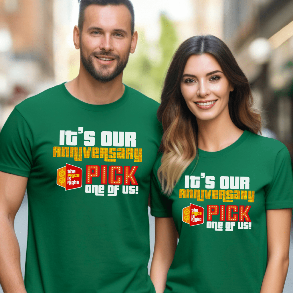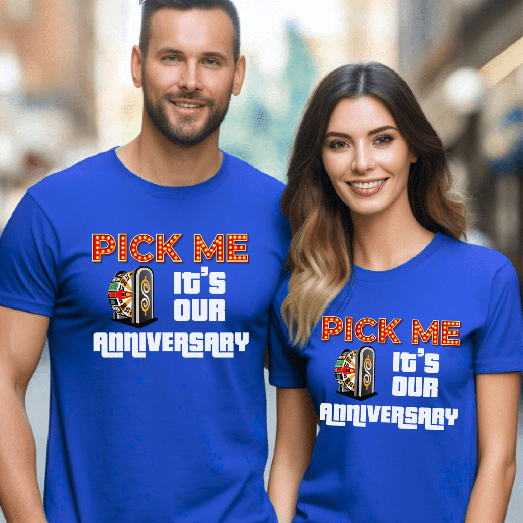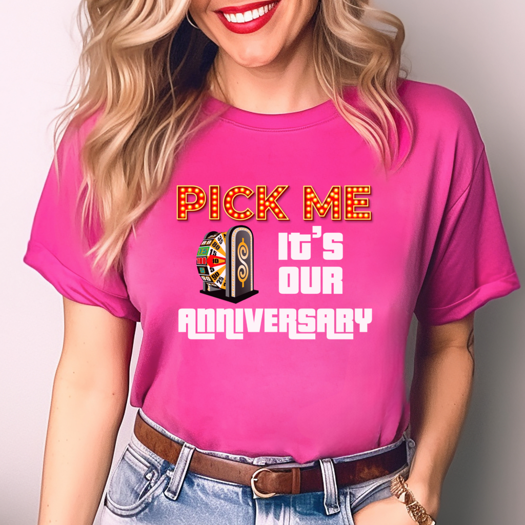Celebrate your special day in style with our Price is Right Shirt for Anniversary! Featuring the bold slogan “Pick Me, It’s Our Anniversary,” this Pick Me Game Show Shirt is perfect for showcasing your love and excitement on the big day. Whether you’re a Price is Right Live Contestant, attending a taping with Drew Carey, or just shouting “Come On Down!” with your favorite married couple, this shirt is a must-have for game show fans!