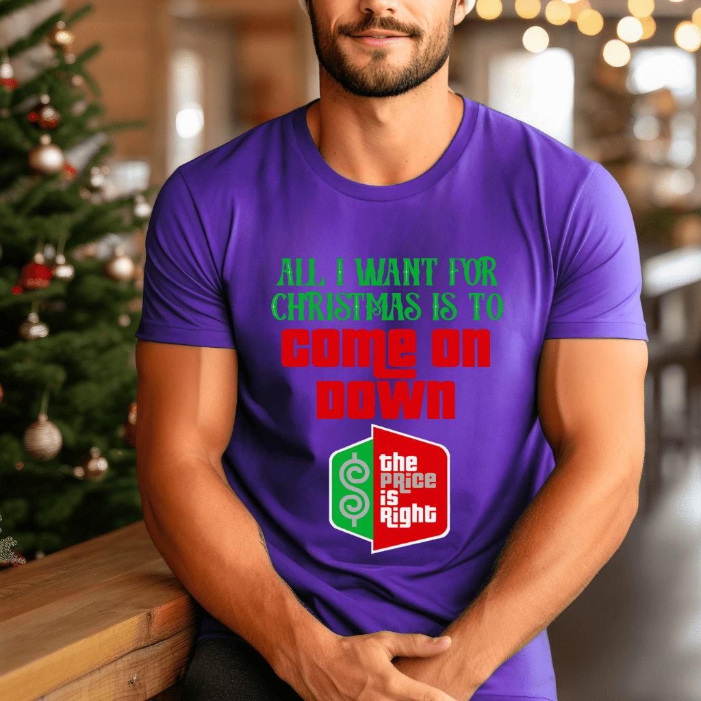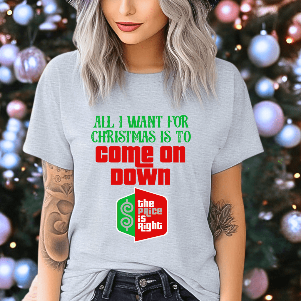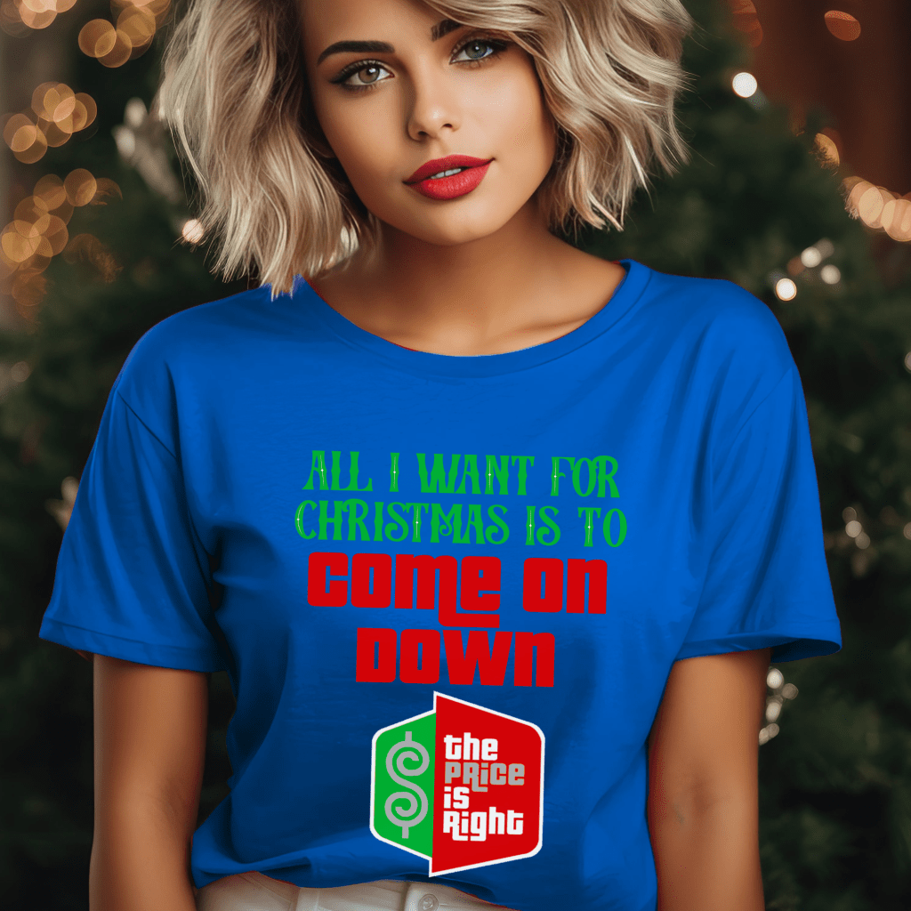 Get noticed on TV with our “All I Want for Christmas is to Come on Down” Price is Right Shirt for Christmas! This retro game show tee is perfect for Drew Carey fans and aspiring live contestants, making it the ideal outfit for your visit to the iconic TV show.