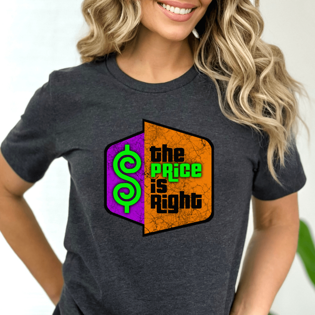Get ready to “Come On Down” with our Price is Right Shirt for Halloween! Featuring the iconic logo in vibrant purple, orange, and green with a spooky black spider web overlay, this Pick Me Game Show Shirt is perfect for any Price is Right Live Contestant. Channel your inner Drew Carey and relive the excitement of the retro TV show in style!