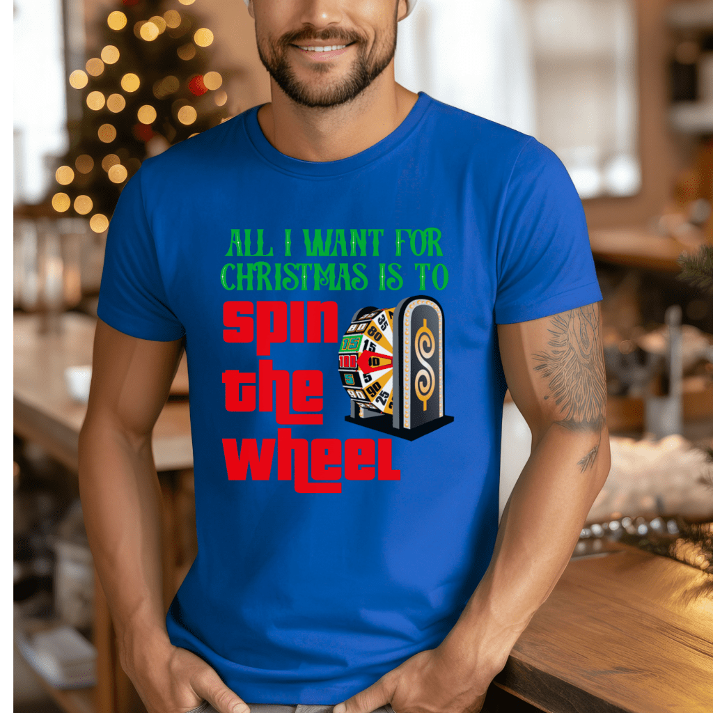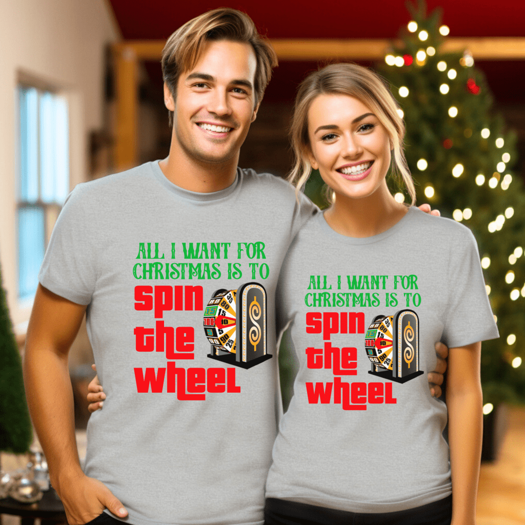 Get ready to “Come On Down” with our Price is Right Shirt for Christmas! Perfect for fans of the classic TV show and live contestants, this Retro Game Show Tee features the festive slogan “All I Want for Christmas is to Spin the Wheel.” Join Drew Carey and showcase your love for the iconic Spinner Wheel in style!