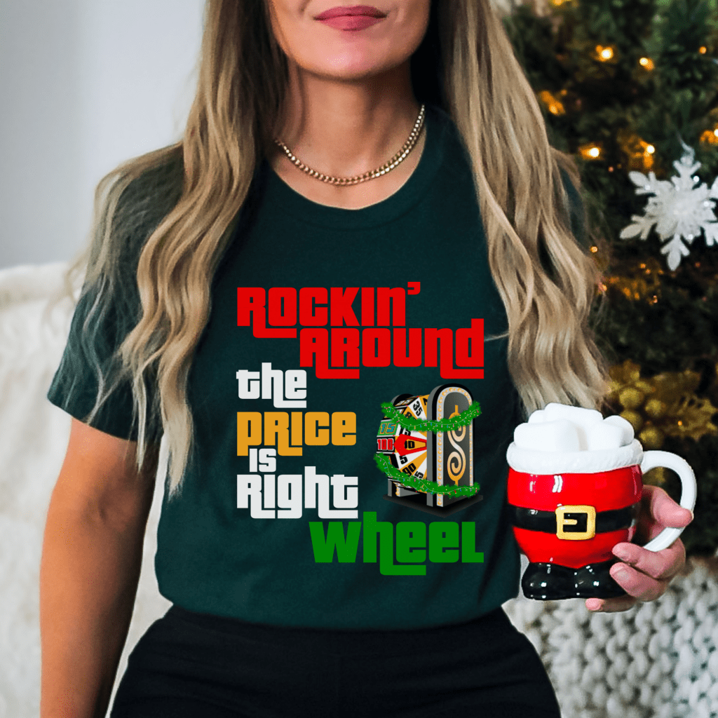 Get ready to “Come On Down” with this festive “Price is Right Shirt for Christmas”! Featuring a fun “Rockin’ Around the Price is Right Wheel” design, this retro game show tee is perfect for fans of Drew Carey and the iconic spinner wheel. Celebrate in style and show your love for the classic show with this unique holiday-themed shirt.