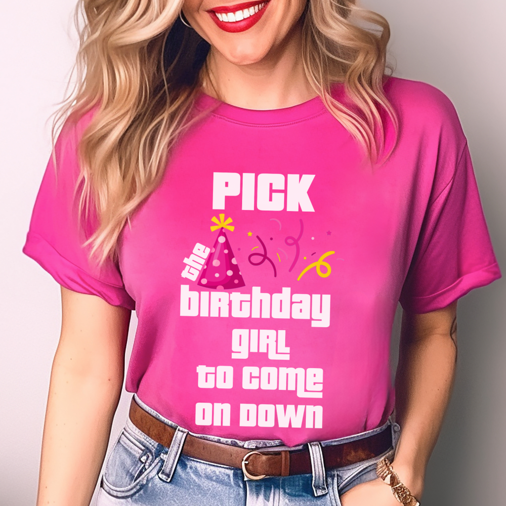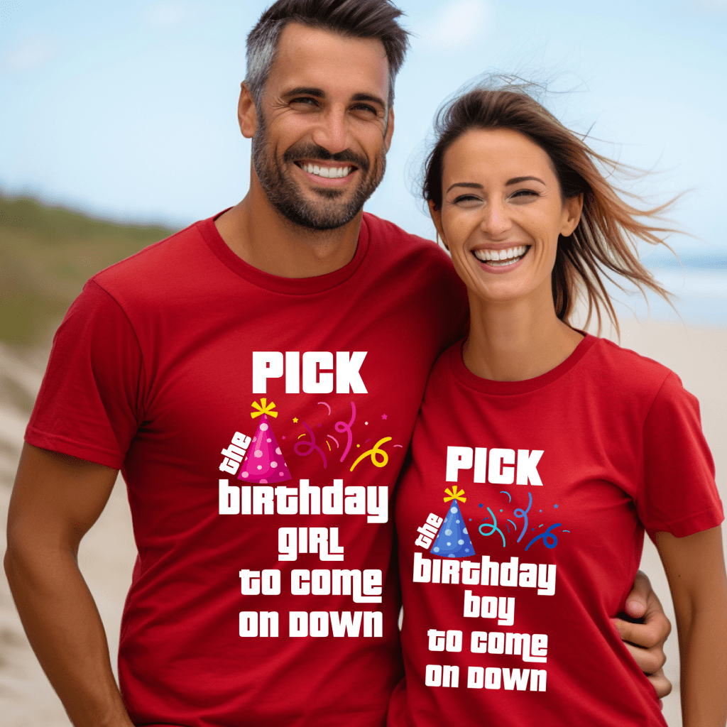 Celebrate a special day in game show style with this Price is Right Shirt for Birthday fun! Featuring the bold phrase “Pick the Birthday Boy/Girl to Come on Down,” this Pick Me Game Show Shirt is perfect for family and friends cheering on the guest of honor. Whether you’re attending a taping with Drew Carey or a Price is Right Live Contestant event, this shirt is a must-have for any milestone birthday celebration!