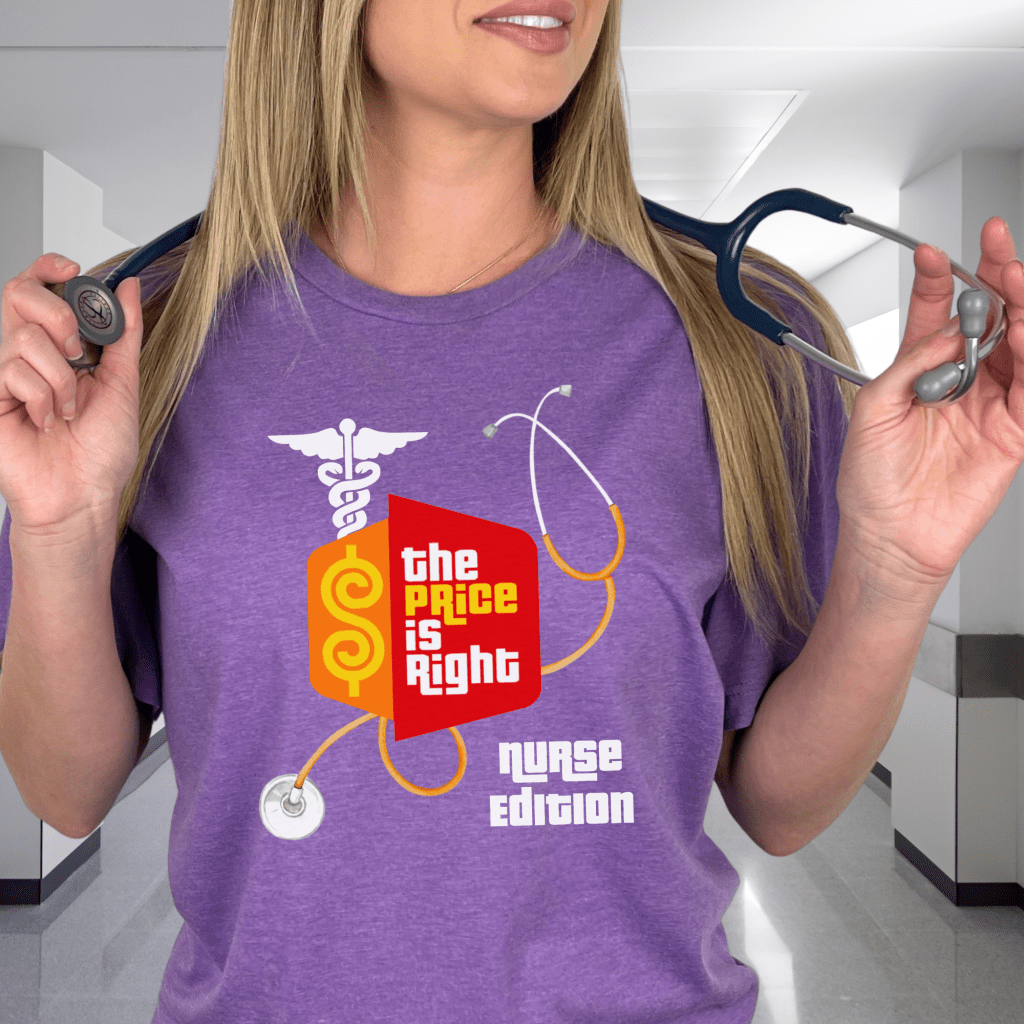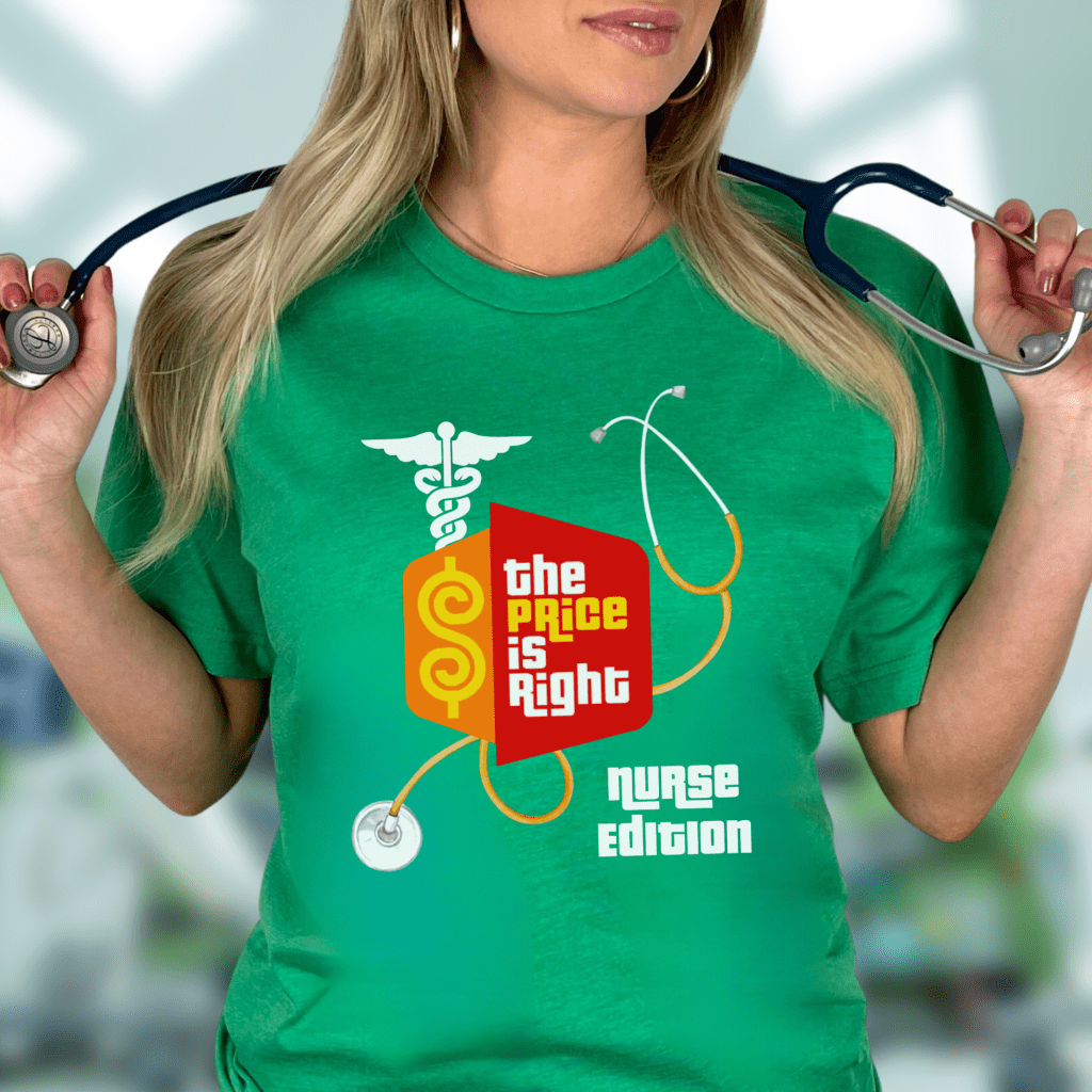 Get ready to make a statement on “The Price is Right” with our exclusive Nurse Edition shirt! Featuring the iconic show logo adorned with a stethoscope, this RN shirt is perfect for any nurse, whether you’re in the NICU, ICU, ER or a Nurse practitioner. Stand out as a Price is Right Live Contestant and show your enthusiasm with this Nurse themed attire. Come on down and join Drew Carey in style