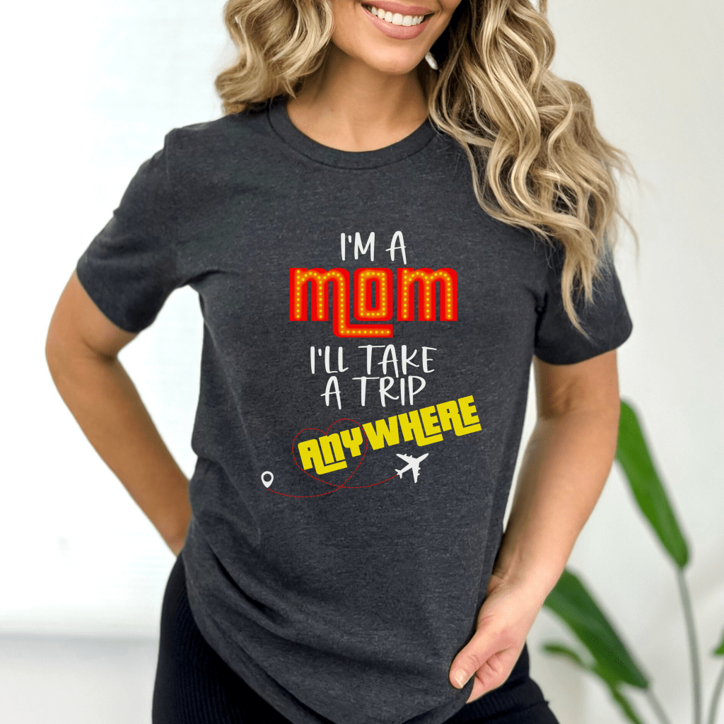 Get ready to dazzle the audience with the ultimate “Price is Right Shirt for Moms”! This eye-catching tee is the perfect Pick Me Game Show Shirt. Grab this shirt for Mother’s Day as a gift for those hardworking moms. Featuring the playful phrase “I’m a Mom. I’ll take a trip anywhere.”, help Mom stand out as she competes for prizes as a Price is Right Live Contestant. She’ll be hearing “Come On Down” rather than screaming kids!
