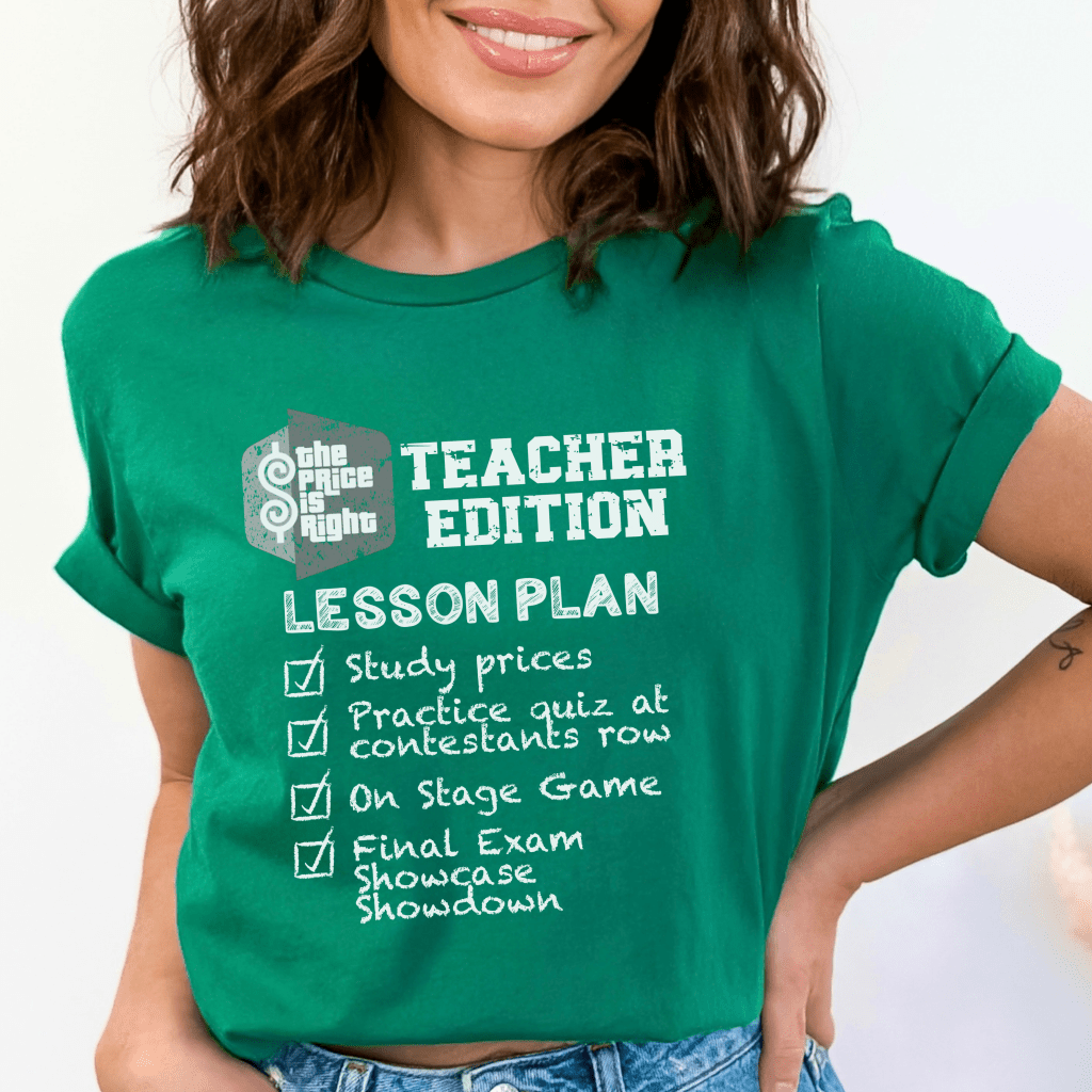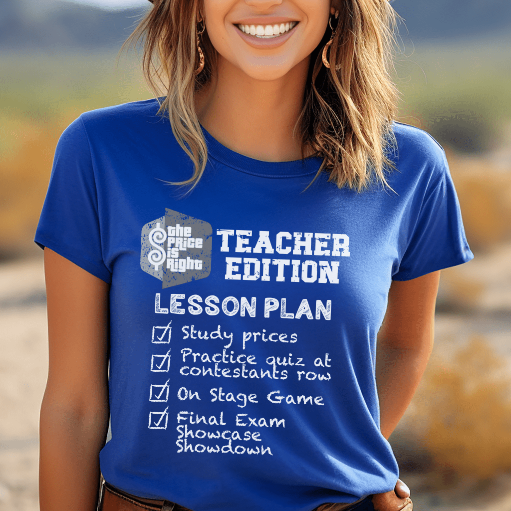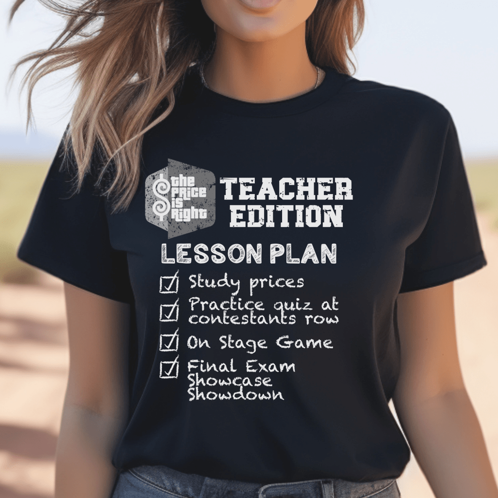 Stand out as the ultimate game show contestant with our ‘The Price is Right: Teacher Edition. Lesson Plan’ shirt, designed specifically for educators ready to compete! Embrace the retro TV show vibes with this unique tee, perfect for any Price is Right Live contestant. Get ready to hear ‘Come On Down’ from Drew Carey himself – pick me for the chance to win big!