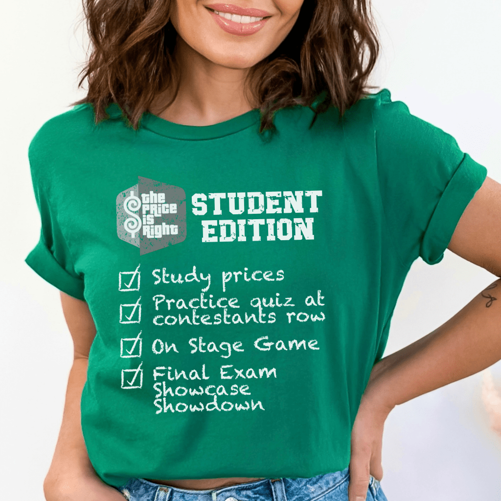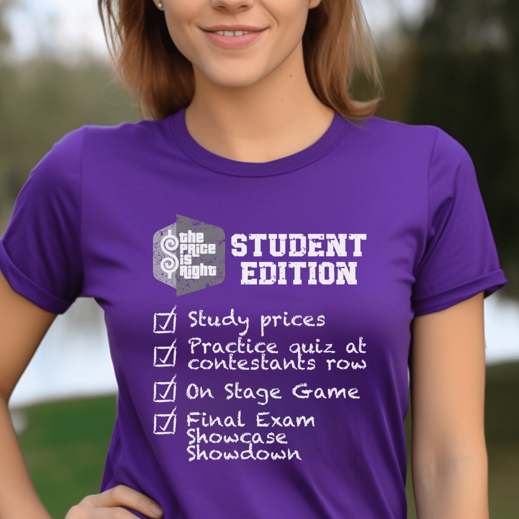 Get ready to steal the spotlight with our “The Price is Right Student Edition” shirt, perfect for any college student gearing up for the ultimate game show experience. With its retro TV show vibes and catchy “Come On Down” slogan, this tee is a must-have for any aspiring Price is Right Live contestant. Channel your inner Drew Carey and stand out in the crowd with this Pick Me Game Show Shirt.
