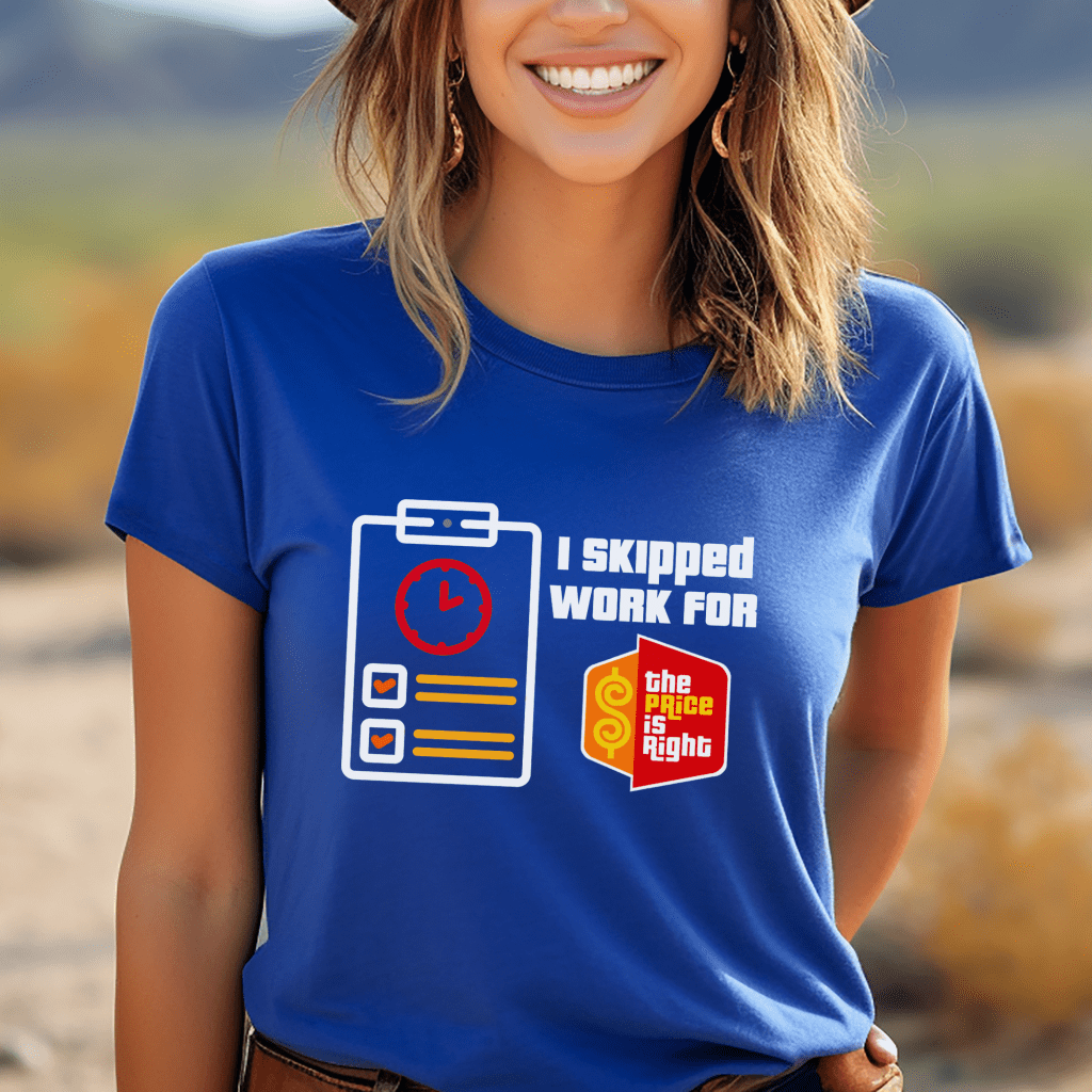 Get ready to “Come on Down” in style with this Price is Right shirt! Featuring the slogan “I Skipped Work for the Price is Right,” this retro game show t-shirt is perfect for any Price is Right Live contestant or fan. It’s a funny way to show you’re ready to spin the wheel and get picked!